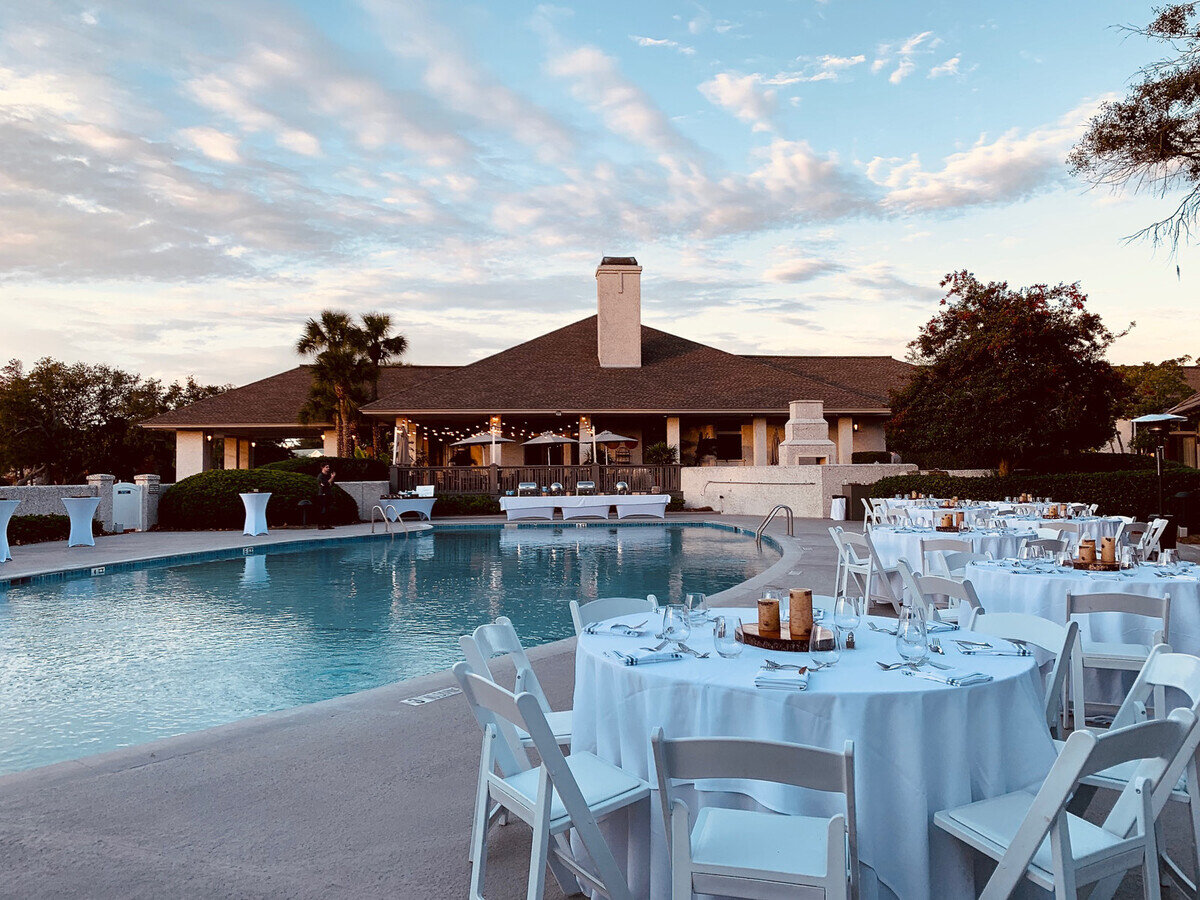 The Sea Palms East Pool is conveniently positioned near the clubhouse and guest accommodations, offering a beautiful poolside ambiance with a built in tiki bar. This space is great for hosting a cocktail hour, rehearsal dinner, or golden hour reception.